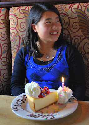 ...where after dinner, the wait staff presented her with cheesecake and sang a rousing chorus of Happy Birthday!